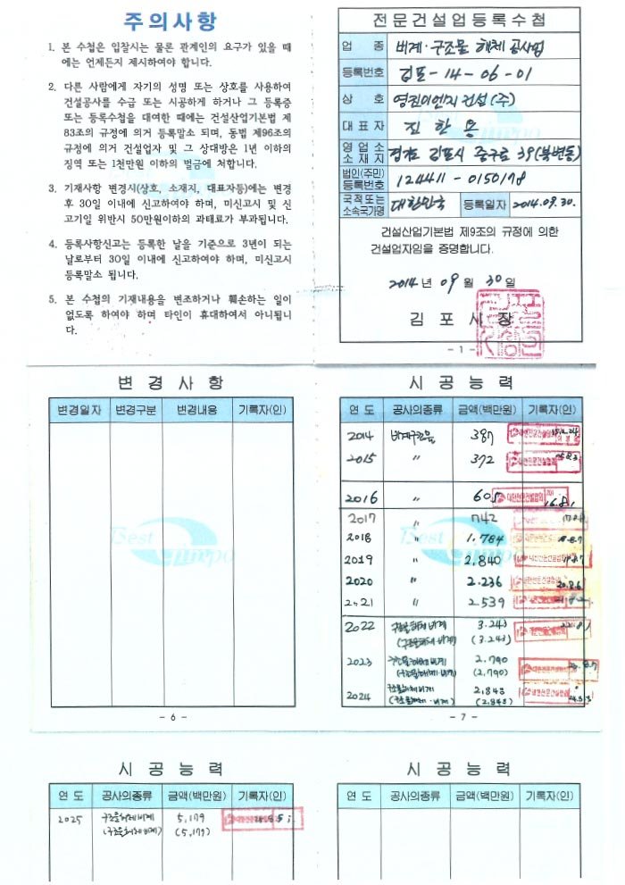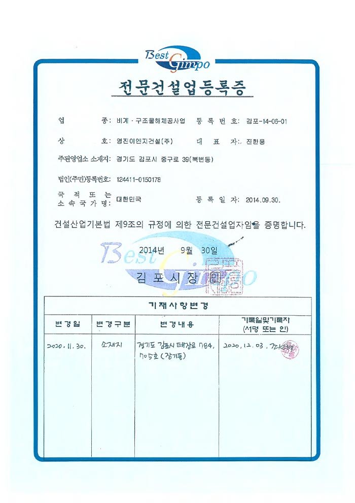 전문 건설업 등록증